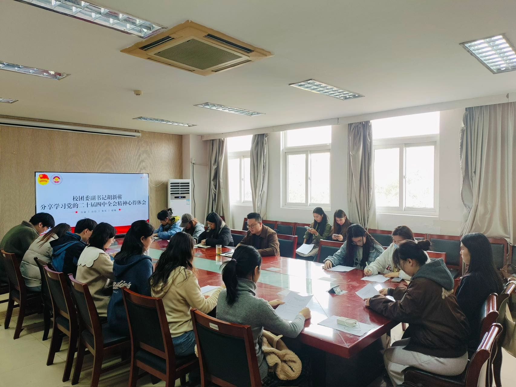 会上,校团委副书记胡新蕲老师以《青春建功“十五五”:共青团服务乡村振兴的价值耦合》为题,分享了学习党的二十届四中全会精神心得体会。胡书记从人才培养与乡村振兴的契合、社会实践与乡村发展需求的呼应、思想引领与乡村文明建设的融合等三个方面,阐释了乡村振兴与高校共青团实践育人的价值耦合与效能转化。