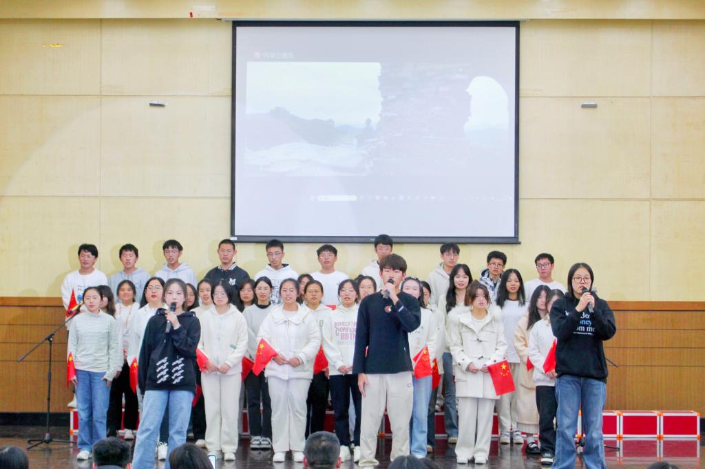 经济2302班用《国家》点燃现场氛围。仰望历史的天空,家国情怀绵绵不断;跨越时间的长河,家国情怀熠熠生辉。无论是战火纷飞,亦或是四海升平,我们始终坚信:有国,才有家。