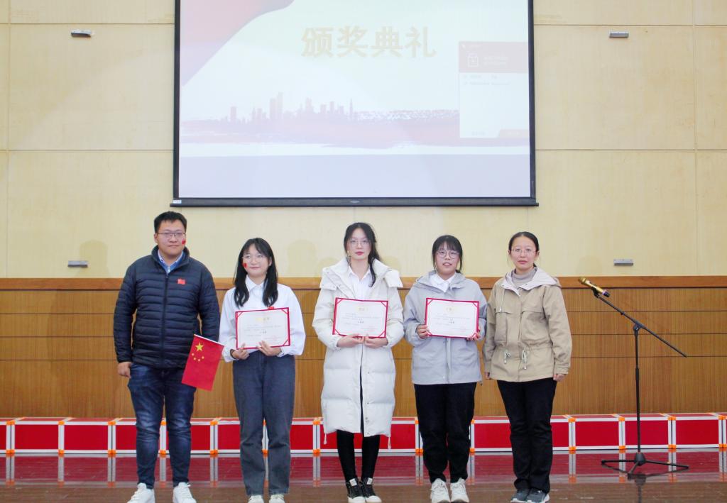 图为二等奖获奖班级代表与颁奖教师合影。陈东岩摄