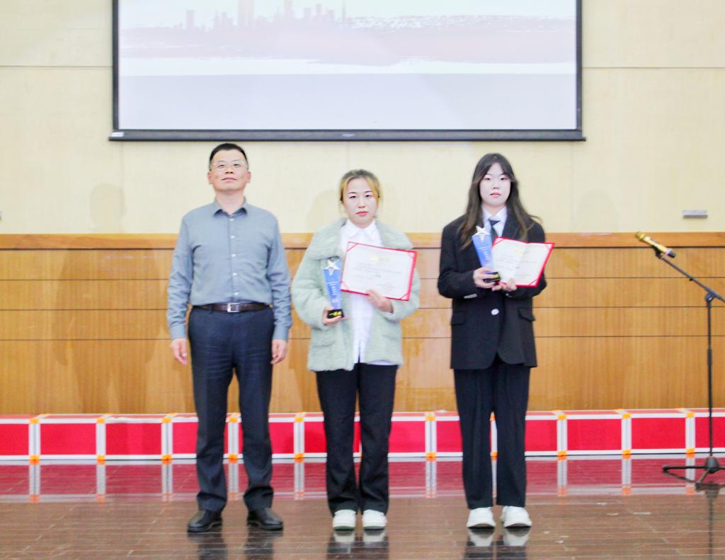 图为经济学院党委书记张圣兵老师为一等奖获奖班级颁奖。陈东岩摄