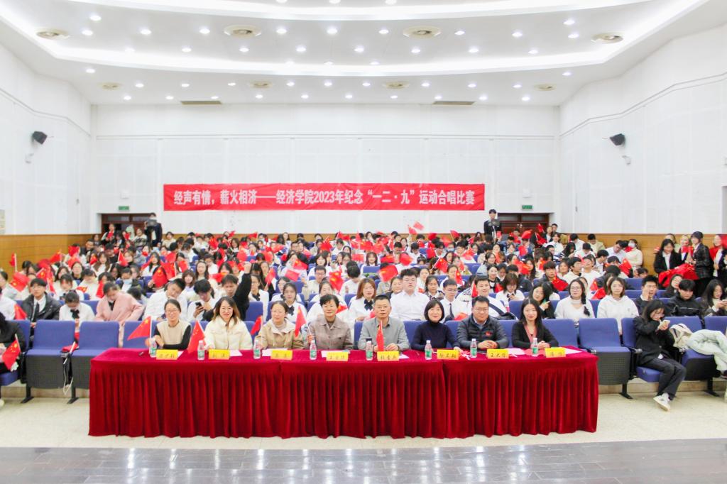 纪念“一二·九”运动合唱比赛,是经济学院为纪念“一二·九”运动而举办的一场合唱盛会。每年十月中旬至十二月初,新生们在学院各处排练“一二·九”合唱曲目,留下了无数关于南财与经济学院的共同回忆。经济学院连续多年举办“一二·九”合唱比赛,引领经济学院青年在歌声中追思峥嵘岁月,在纪念中思考时代主题,将爱国主义教育和集体主义教育融入到声乐美育教育中,年复一年,重温革命先辈为实现民族独立和解放而奋勇前进的革命历程,赓续“团结起来,振兴中华”和“请党放心,强国有我”的青年使命。