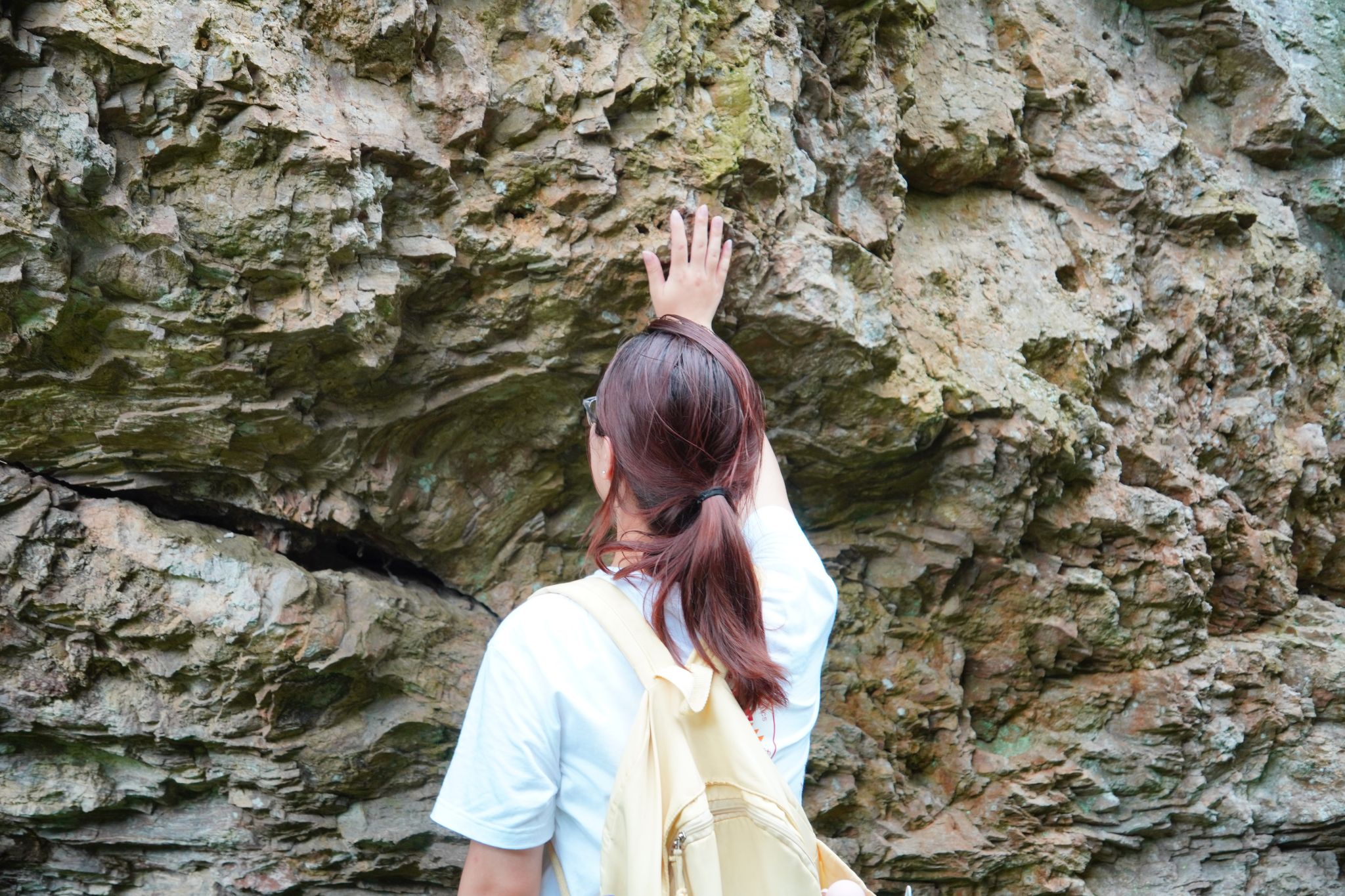 触摸鼎湖峰的石壁,团队成员们感受其粗糙质感及风雨、地壳运动留下的痕迹。在朱潭山,他们体验了溪水的清凉及水流中砂石轻擦皮肤的感觉,研究水流对周边生态环境的影响。据了解,景区水质常年保持Ⅱ类以上,以此保持景区生态环境的质量。成员们还触摸了倪翁洞的钟乳石,感受其温润质感,以及岩宕书房岩壁上的采石凿痕,对比不同年代凿痕的工具特性,还原古代采石工艺。触觉调研使团队成员对仙都的自然地质和历史文化有了更直观、更深刻的认识,收获了关于岩石、水流和书法等方面的实践知识。