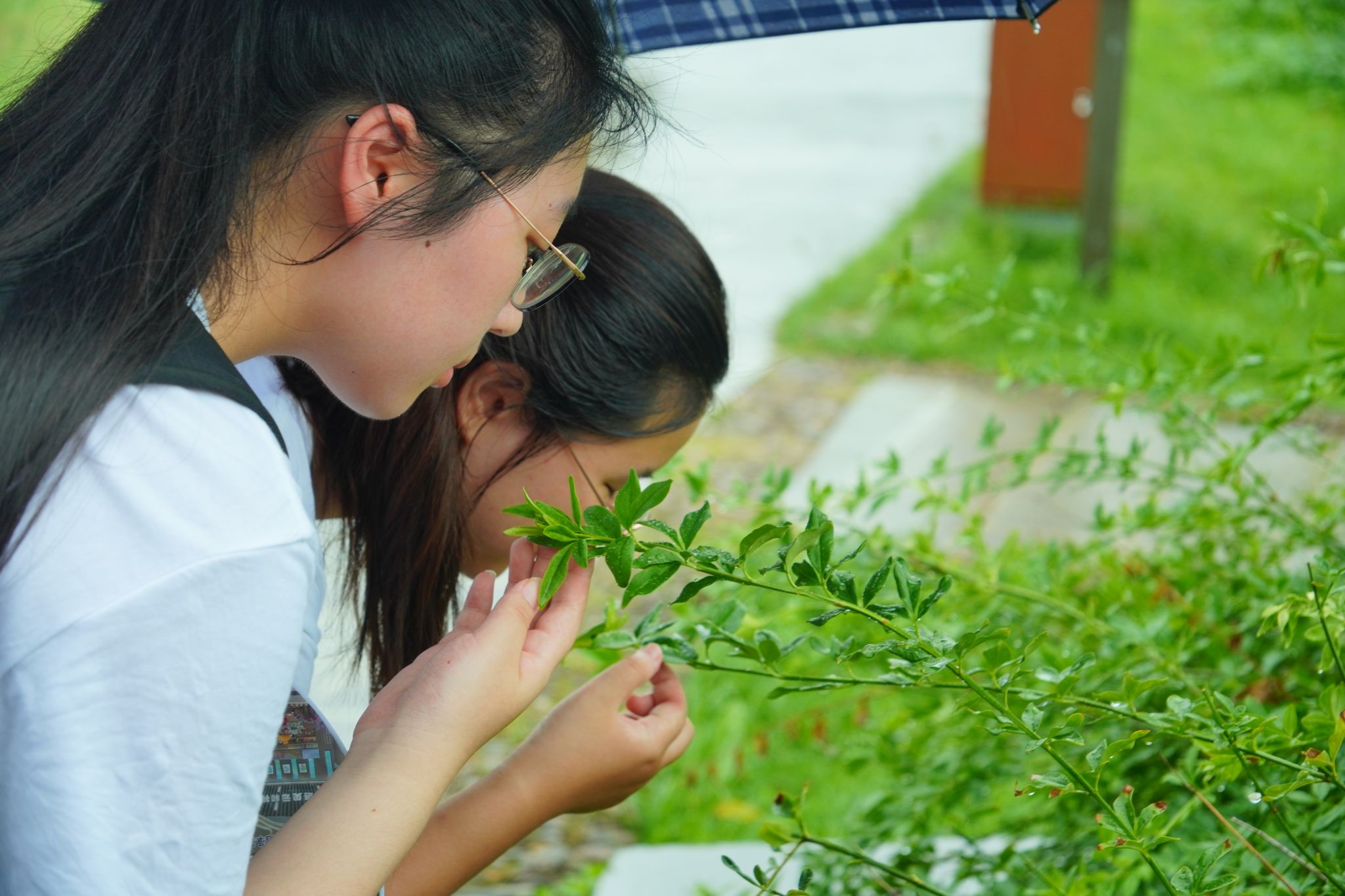 图为团队成员嗅雨后树叶 田诗颖 供图