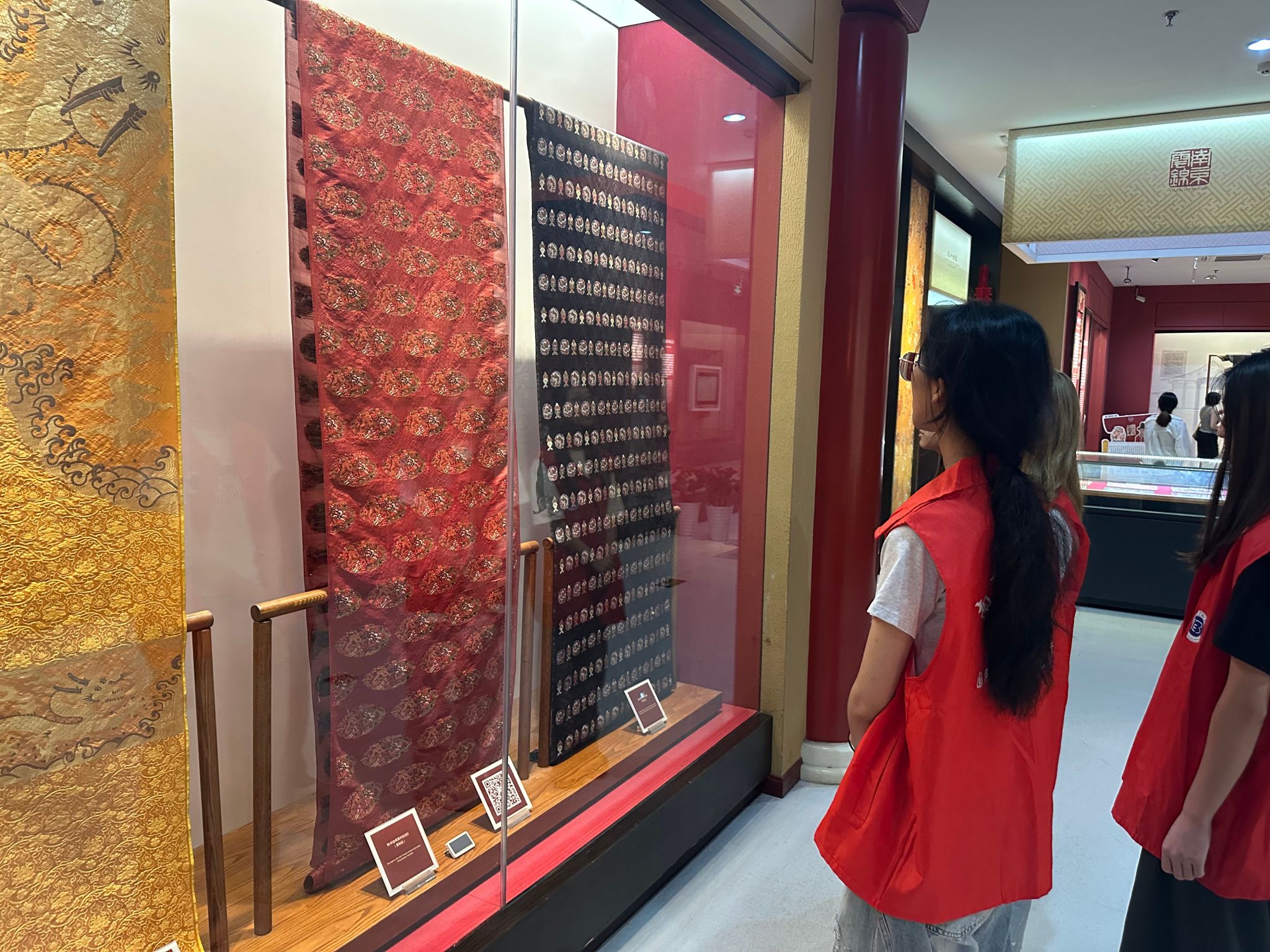 为增强青年学生对非物质文化遗产的认识和保护意识,激发对传统文化的创新思维和传承热情,2025年7月23日,南京财经大学国际经贸学院非遗传承暑期社会实践团队——“承纹小队”走进南京云锦博物馆,以“探寻云锦文化,传承非遗匠心”为主题开展研学实践。