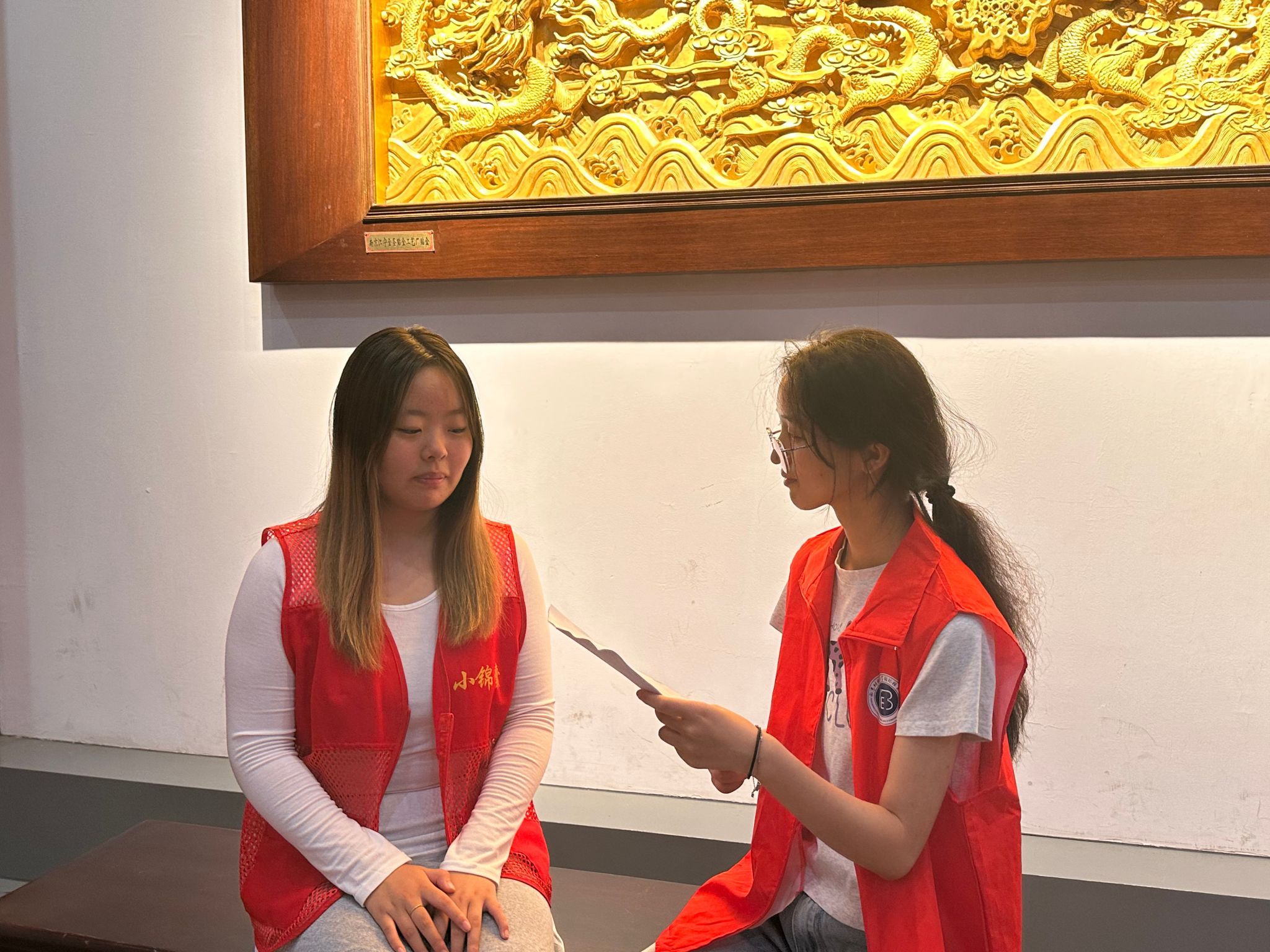 图为团队成员在与博物馆志愿者小锦囊交流 张可欣 供图