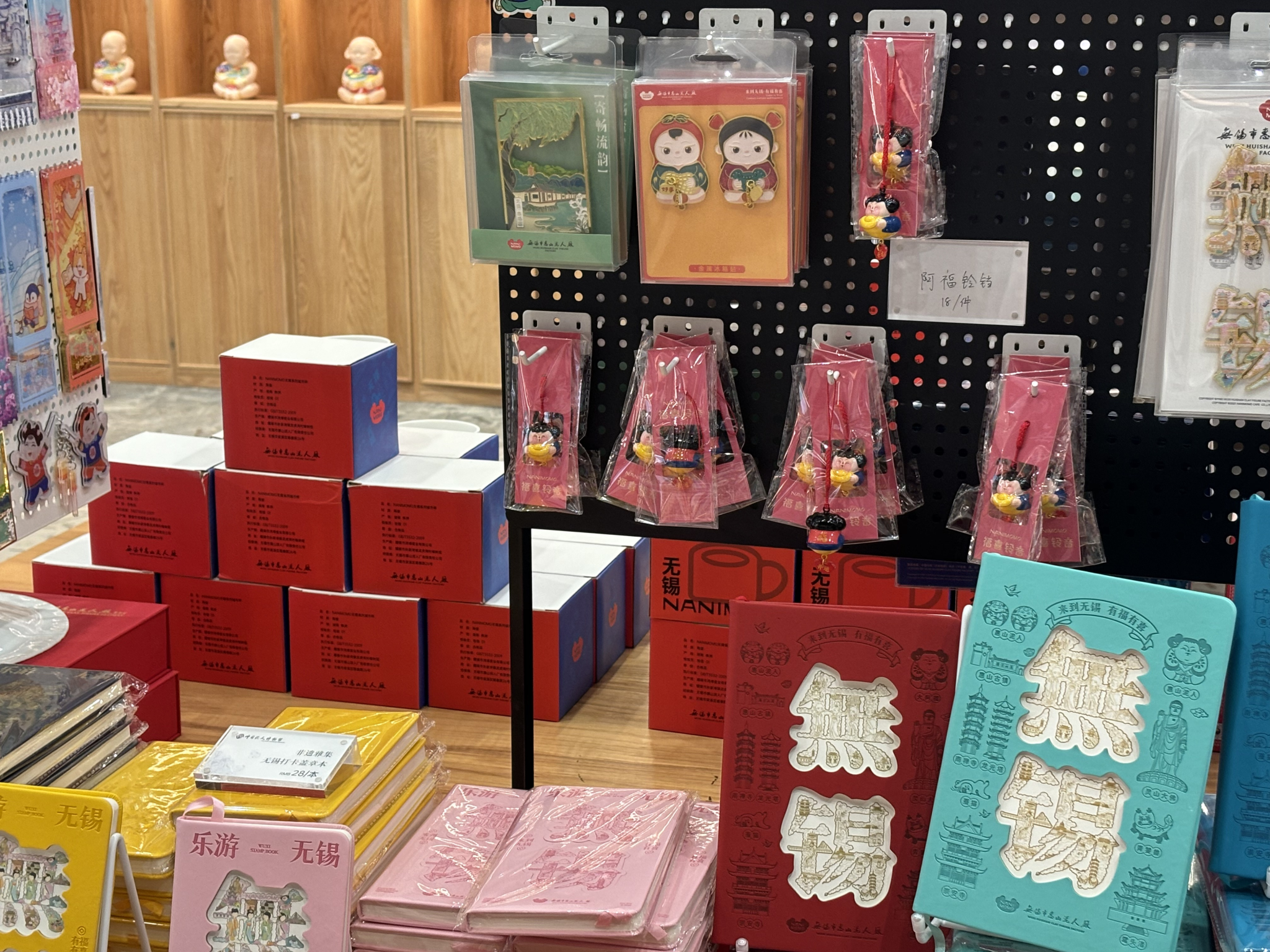 翻过历史的一页,转过身,成员们看到泥人“新”的一面。一块写有“明星同款,好柿成双”的展板,一张印着“福气入冬,莓有烦恼”的宣传海报,还有一角文创展览……眼前情景让团队成员们了解到:惠山泥人已走进微博之夜,以独特方式亮相大众视野;跨界进入餐饮领域,与“7分甜”推出联名产品,深受年轻人青睐;更涉足文创制作,通过实用创新的文创产品及盲盒等时尚设计,赢得了游客的喜爱。