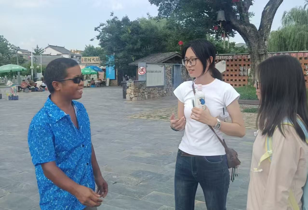 图为团队成员冯烛礼、吴怡采访佘村村民 潘颖 供图