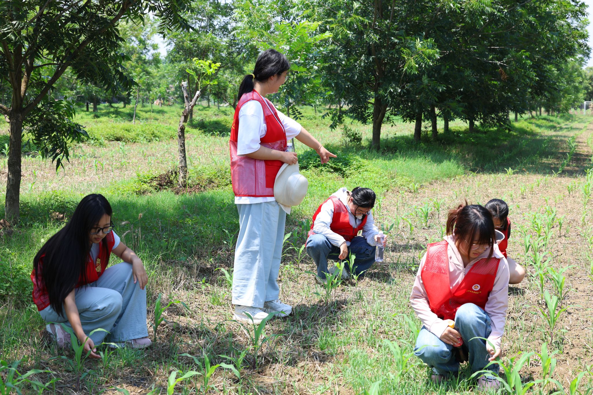 图为队员们在特色产业园中体验除草 陈诗祺 供图