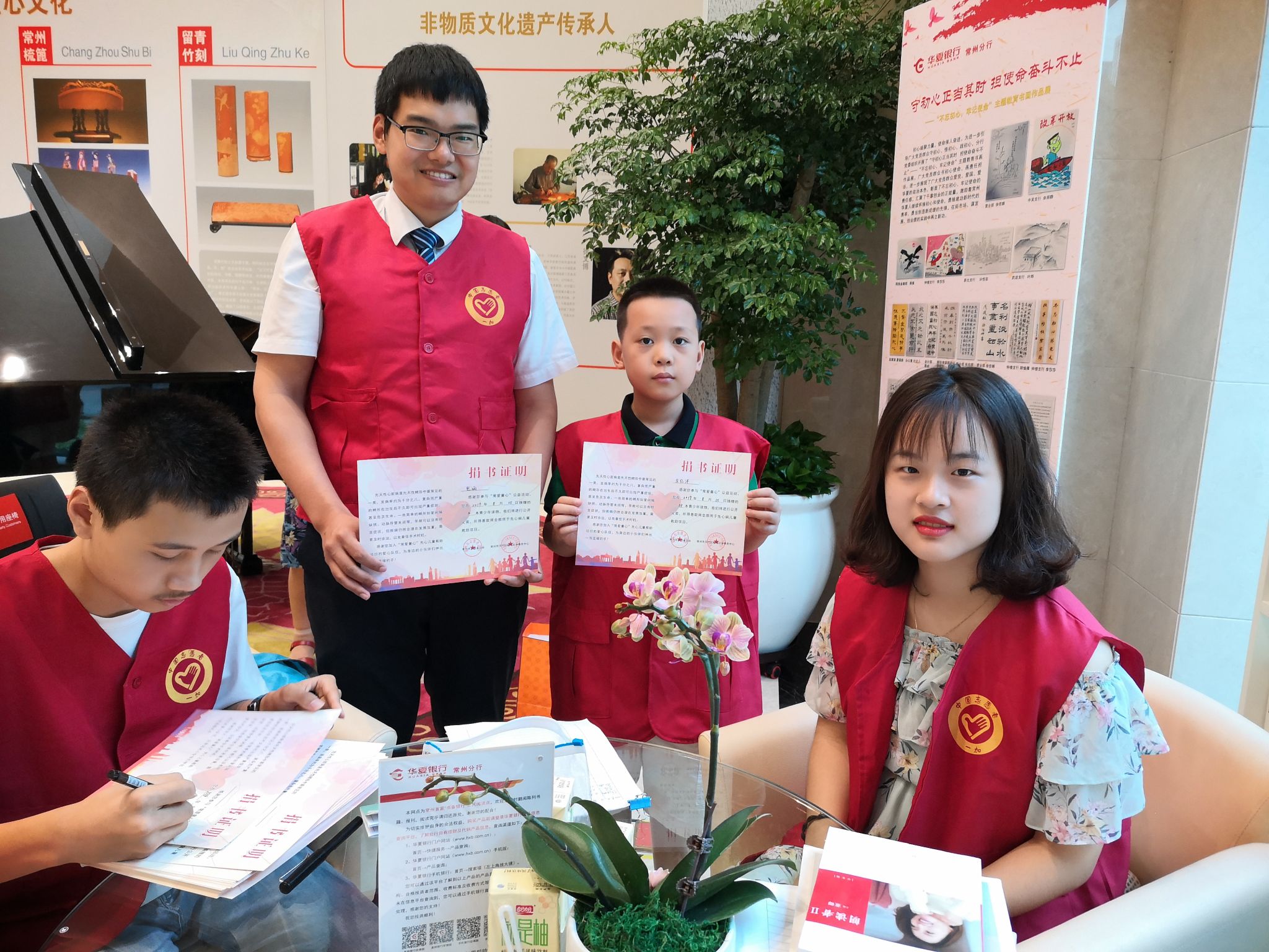 7月27日,团队部分成员走进华夏银行常州分行一楼大堂,携手多家爱心机构启动“常爱童心”公益捐书活动。上午8时前,身穿红马甲的志愿者已完成“爱心书岛”布置——三层蓝色捐书台整齐排列,分类标签、登记表、捐书证明等物资准备齐全。
