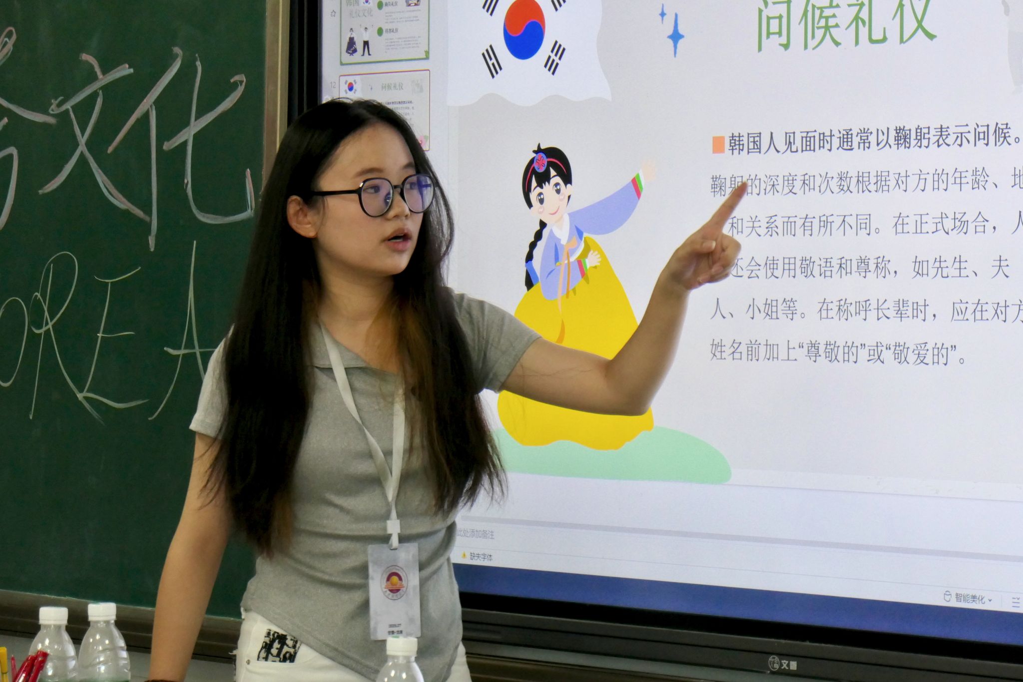 图为跨文化交流课上,王思洁老师介绍着韩国礼仪 罗天悦 供图