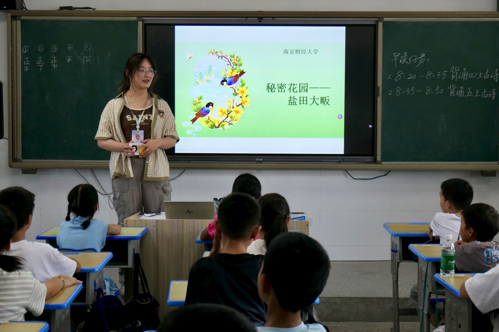 图为邢若桐老师的《农作物认知》课上,讲述盐田大畈的故事 罗天悦 供图