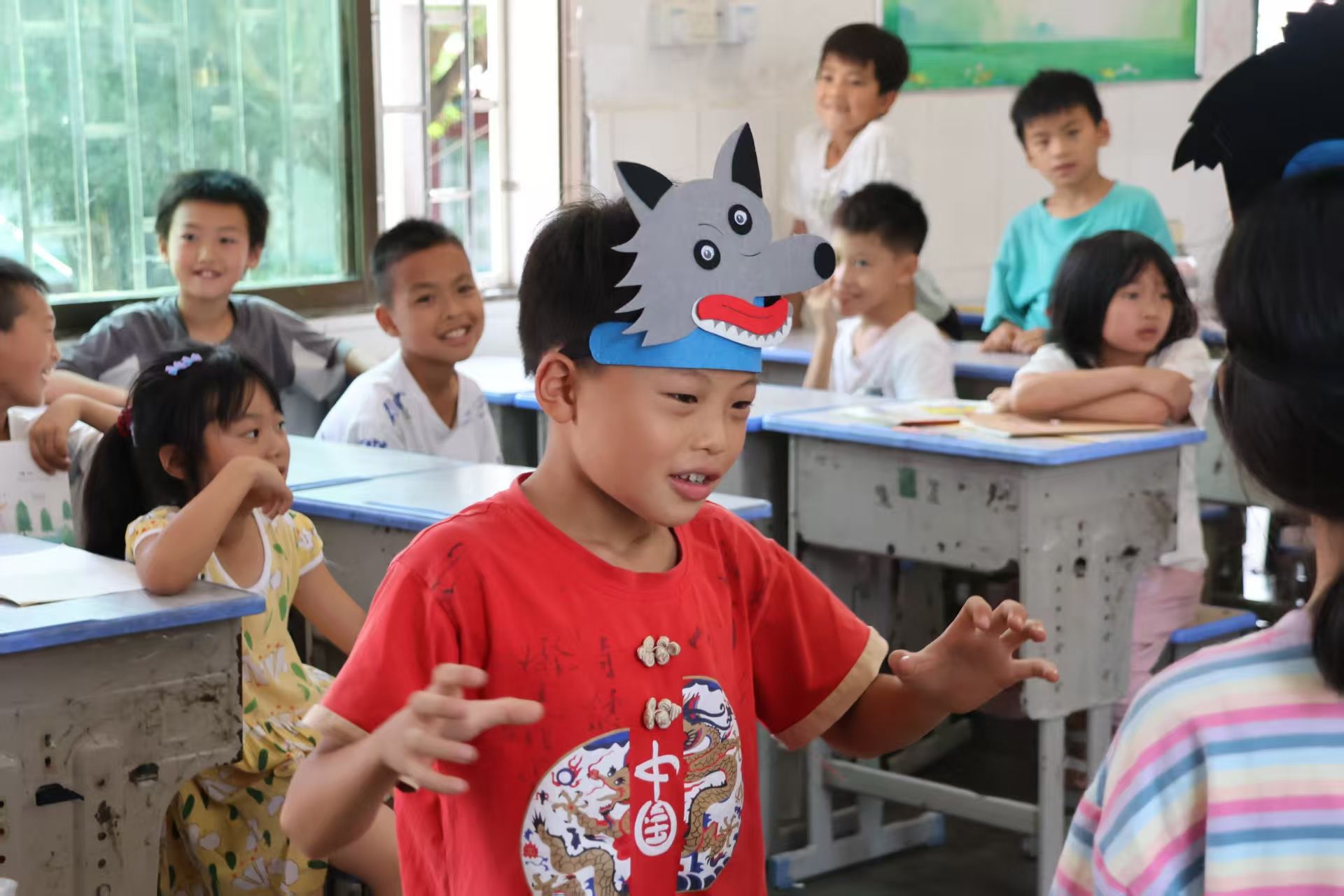 “话剧不是‘演’,是玩着玩着就学会了表达。”志愿者老师王佩馨说,低年级课堂从不教复杂技巧,而是让孩子们在“魔法镜对话”“小猪盖房”的奇趣互动里,自然学会说话要响亮、合作要开心。当最后一组孩子戴着“稻草房”“石头房”面具道具鞠躬时,台下响起的掌声里,藏着他们对“表演”最纯真的理解。