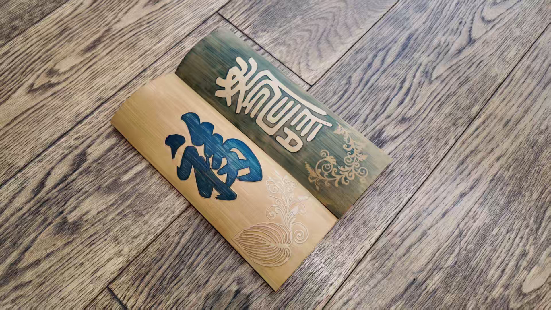 谈老师的作品在留青竹刻基础上大胆创新,把晒蓝工艺与竹刻奇妙融合。眼前的竹刻作品,既有留青竹刻刀法精湛的传统韵味,又因晒蓝添了独特色彩层次。其中一件刻有“福”字的竹制品,蓝色“福”字在竹材底色映衬下格外醒目,周边辅以细腻竹刻纹饰,传统与创新碰撞出别致美感;另一件作品上,晒蓝营造出的纹理,与留青竹刻的图案相得益彰,让竹刻不再只是单调的竹木原色呈现,而是多了色彩交织的艺术张力。
