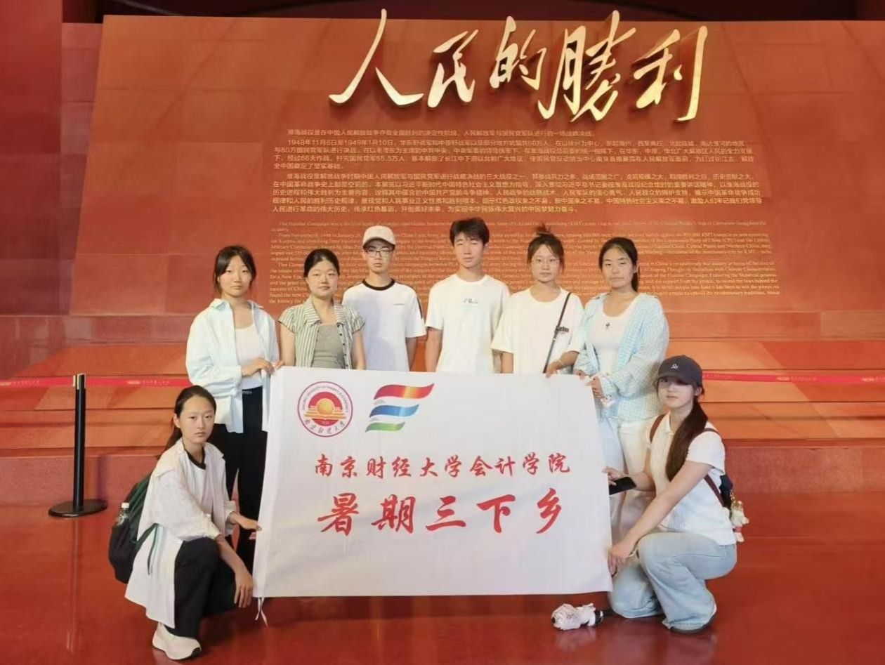 2025年7月31日,南京财经大学会计学院“淮海忆峥嵘”团队暑期三下乡实践团队奔赴徐州市,走进徐州淮海战役纪念馆开展沉浸式革命历史学习活动,此次活动旨在深入探寻淮海战役的历史脉络与精神内核,聚焦红色基因如何在青年群体中实现代际传承,为学院厚植学生爱国情怀、培育担当民族复兴大任的时代新人拓宽实践路径。