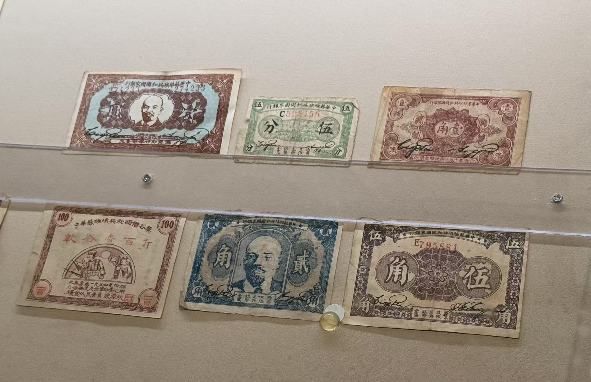 不远处的展柜里,一张张泛黄的中华苏维埃国家银行钞票让团队成员久久凝视。讲解员介绍道,1931年11月,中华苏维埃临时中央政府在瑞金成立后,毛泽民受命筹建国家银行。1932年漳州战役大捷筹得的105万大洋,为这家红色银行奠定了资金基础。这些看似普通的纸币,不仅是苏区经济活动的见证,更承载着共产党人在艰苦环境中发展金融事业的智慧与担当。