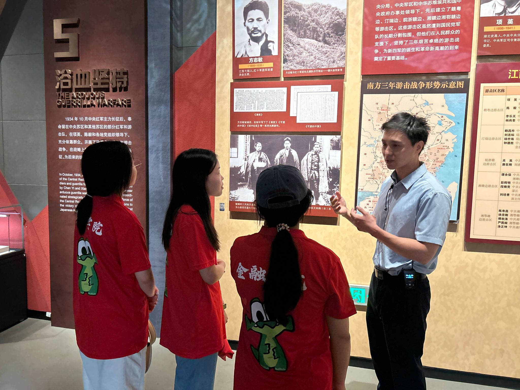 2025年7月29日早上,南京财经大学金融学院“金鳄票红”调研团队成员怀揣着对红色金融历史的好奇与崇敬,走进这座装满革命记忆的场馆——江西省博物馆。在“红色摇篮—江西革命史陈列”展厅里,他们循着泛黄的票证,触摸那段战火中淬炼出的金融初心,为红色金融文化的活化传播寻找灵感。