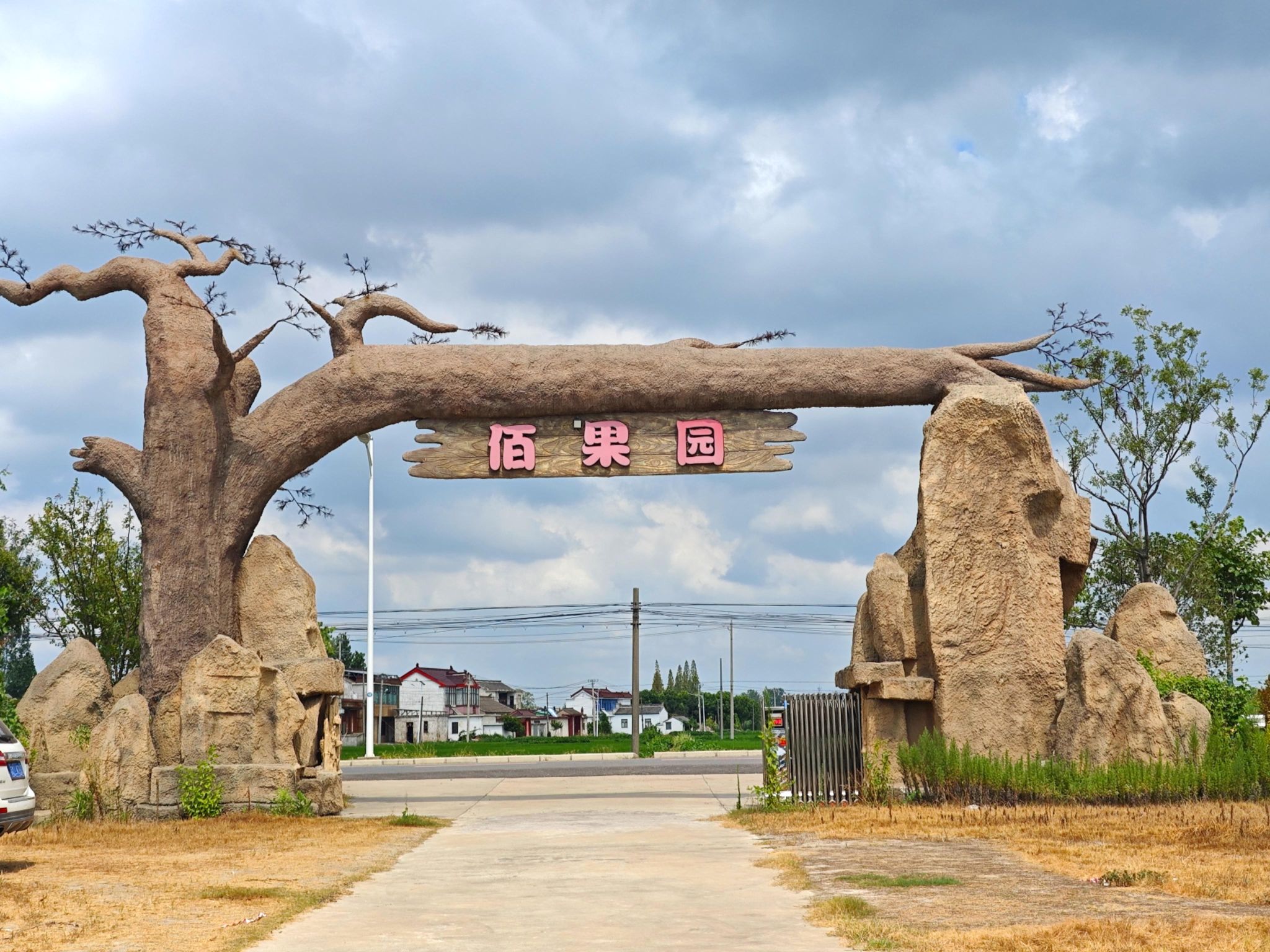 实践团队抵达基地,“火龙果基地”的醒目标识和造型别致的“佰果园”大门映入眼帘。作为姜堰区特色园艺产业乡村振兴科技综合引领项目的实践载体,这里温室大棚错落有致,为大学生们的田野调查开启了充满希望的序章。饱满的火龙果垂挂枝头,展现着现代农业的蓬勃生机。