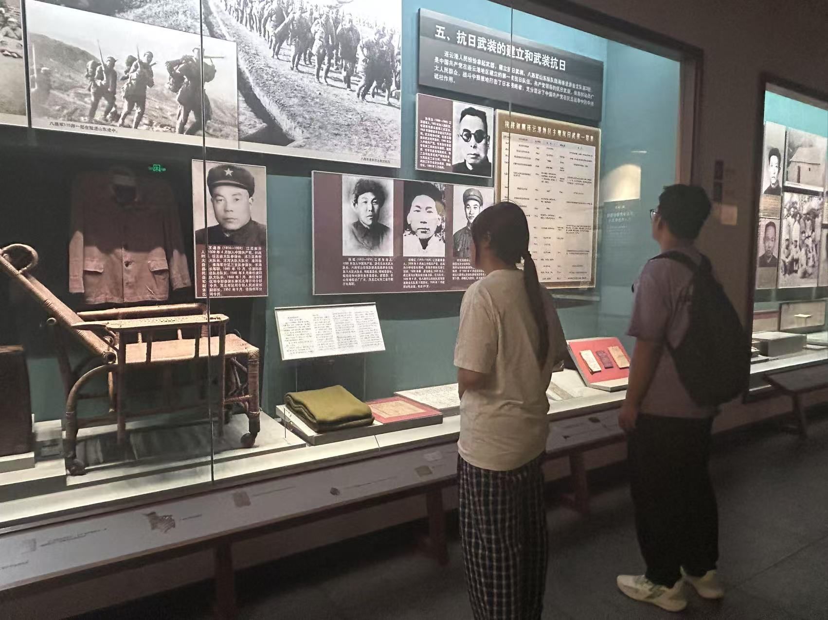图为实践队员与学生一起参观抗战历史 李文希 供图