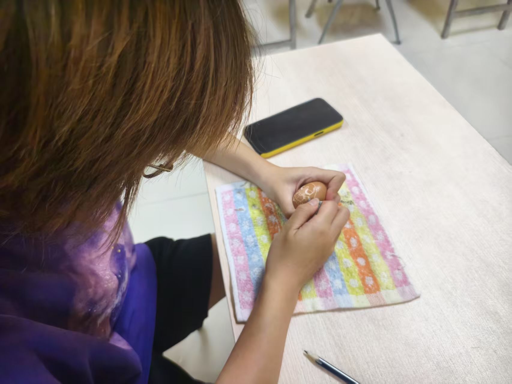 图为团队同学在认真雕刻蛋雕 张亦翾 供图