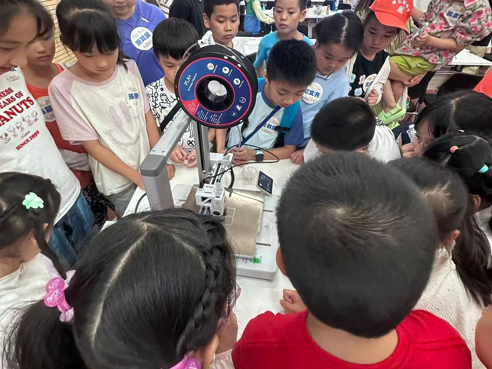 活动接近尾声,孩子们仍兴致勃勃地围绕在机器旁,久久不愿离去。他们一边分享着自己的体验感受,一边向志愿者们提出各种奇思妙想的问题,眼中闪烁着对科技的无限憧憬。此次体验不仅点燃了孩子们心中对科技的热情,也为他们打开了通向未来的一扇窗。