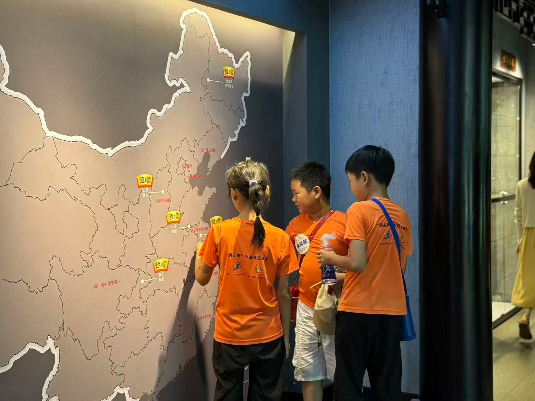 在博物馆讲解员和“阡陌逐梦”团队成员的带领下,孩子们在醋史馆通过展板、塑像、场景再现和视频,了解镇江醋乃至中国醋的文化、历史渊源和发展历程。推开斑驳的木门,一股浓烈的糯米与麦麸混合的香气扑面而来——老作坊完整还原了民国二十六年镇江“恒顺老厂”的造醋场景,参观时仿佛置身百年前,同老匠人们一起翻醅酿醋。“阡陌筑梦”团队成员协同工作人员和其他志愿者们为孩子们准备了小杯醋品尝,孩子们纷纷挑战自己的“吃醋”本领。来到陈列馆,这里展示了来自镇江、山西等地,以及美、日、德等10多个国家的数百种醋产品。孩子们品尝了蜂蜜醋等特色醋味饮品。最后在出口处,孩子们争相在盖章处印上一个个精美的刻章,作为这次参观醋文化博物馆的纪念。