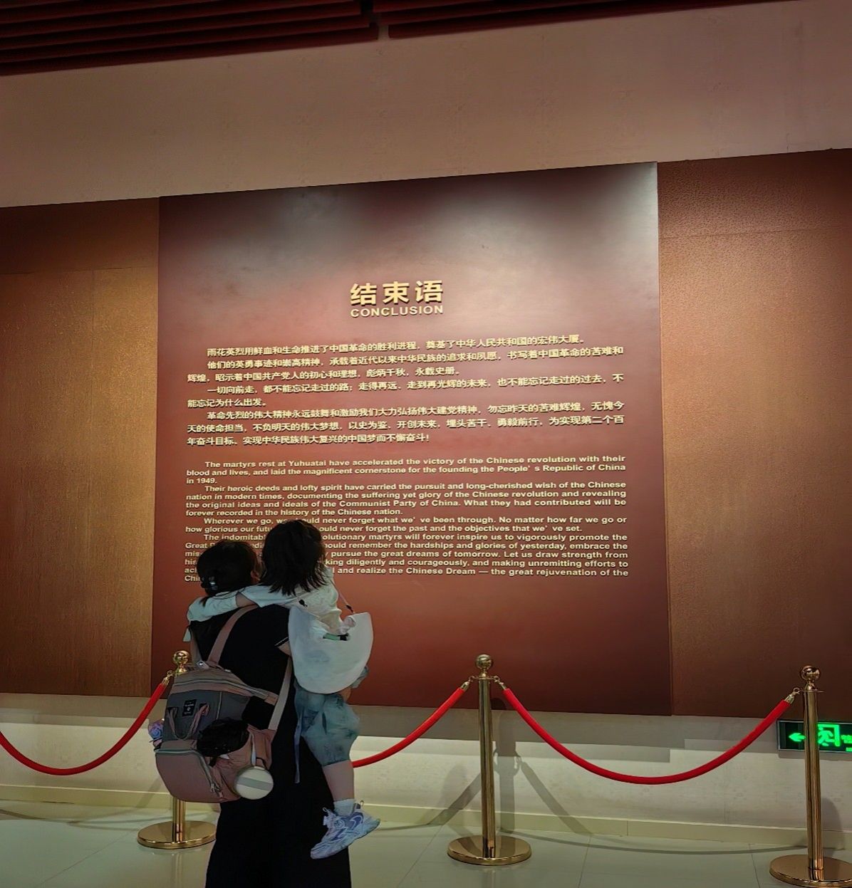 团队成员注意到一位母亲怀抱着女儿,认真地阅读着墙上关于雨花台烈士事迹和精神内涵的结束语,通过这次参观,母女俩不仅加深了对历史的了解,也感受到了雨花台精神的伟大和深远影响。母亲表示,希望通过这样的实地教育,让孩子从小就树立正确的价值观和历史观,继承和发扬革命先烈的优良传统。相信在这样的教育下,孩子们将会成长为有理想、有担当的新时代接班人。