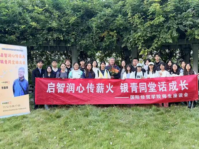 为充分发挥“五老”资源的育人优势,引导青年学生树立正确的历史观、民族观与价值观,11月12日下午,一场温暖而深刻的师生座谈会在南京财经大学仙林校区的西苑紫藤长廊举行。国际经贸学院特邀退休教师、原国际经贸学院副院长张复舜教授与青年师生围绕家国情怀、个人成长与时代责任等话题交流座谈。