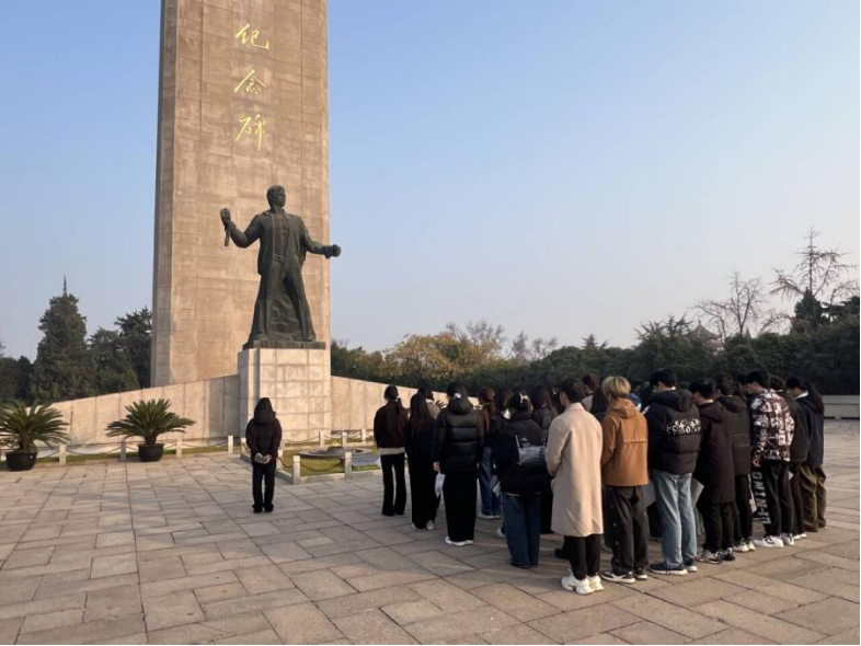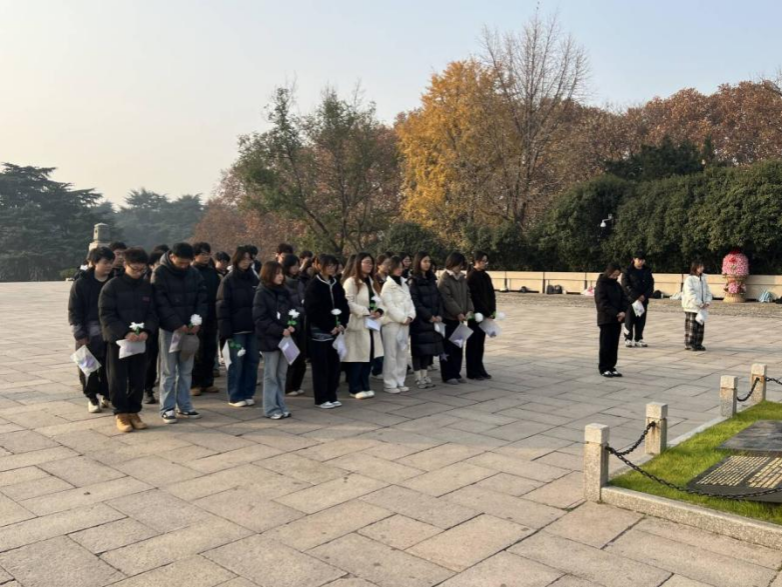 12月11日上午,怀着对英烈的无限敬仰,同学们赴南京雨花台烈士陵园开展实地致敬活动。抵达后,全体成员在入口处集合,整理着装与纪念袋,随后肃立列队,缓步步入纪念碑广场。大家保持庄严肃穆,致敬仪式正式开始。全体成员面向革命烈士纪念碑肃立默哀1分钟,深切缅怀英烈。默哀完毕,学子们依次上前,将亲手制作的手工制品敬献于纪念碑前,鞠躬致敬,表达对英烈的崇高敬意。随后,在领誓人的带领下,大家举起右拳庄严宣誓:“铭记英烈事迹,传承红色基因;坚定理想信念,勇担时代使命;以青春之我,创青春之国,不负韶华,不负英烈!”铿锵誓言回荡在广场上空,彰显着新时代青年的责任与担当。