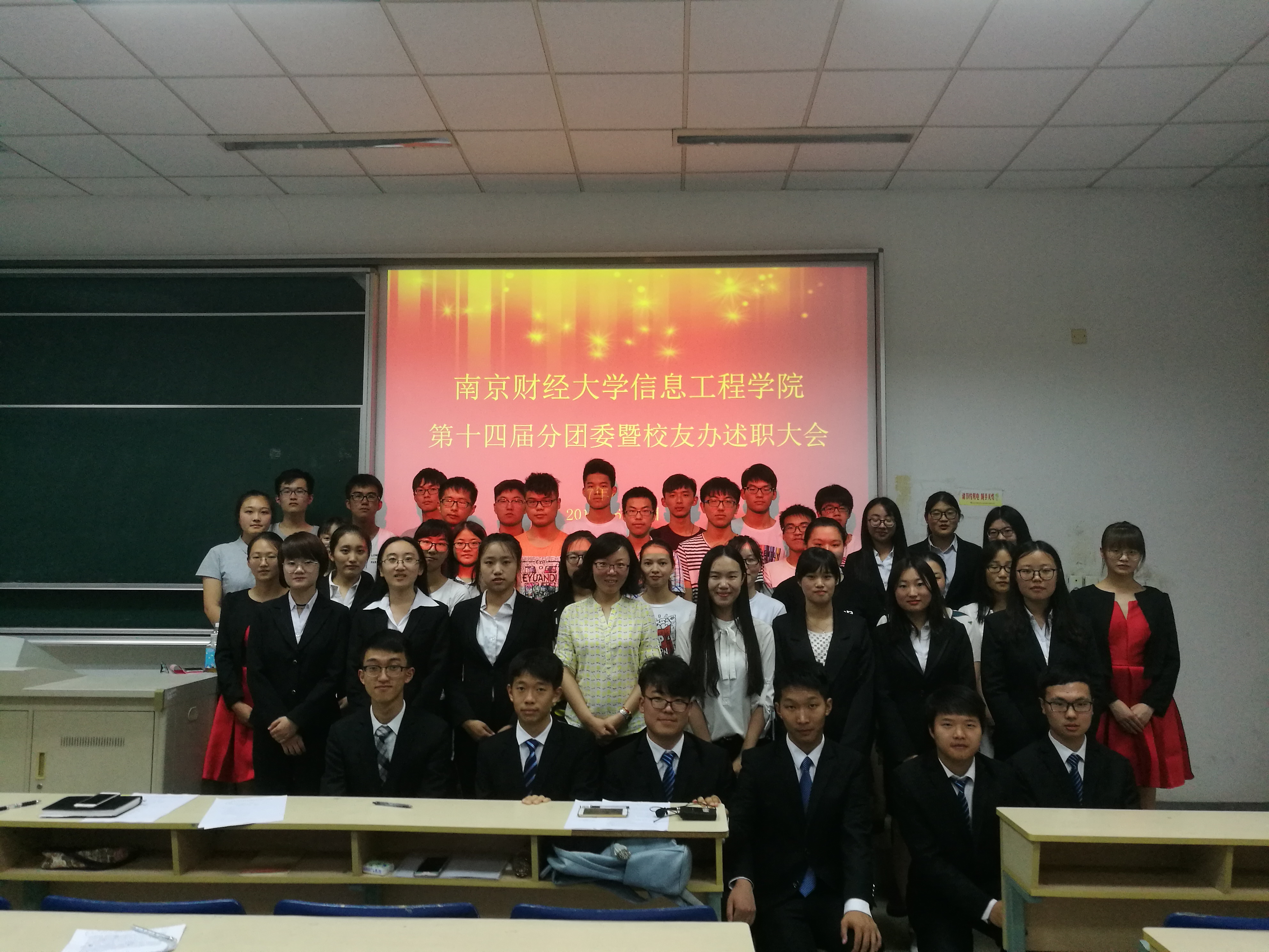 6月8日下午,信息工程学院第十四届分团委暨校友办期末述职大会在管理学科楼117教室举行。信息工程学院分团委书记张媛媛老师、校友办副主任丁羽燕和袁佳俊、第十三届分团委副书记史学佳、汪垚和曹育逢出席此次会议。