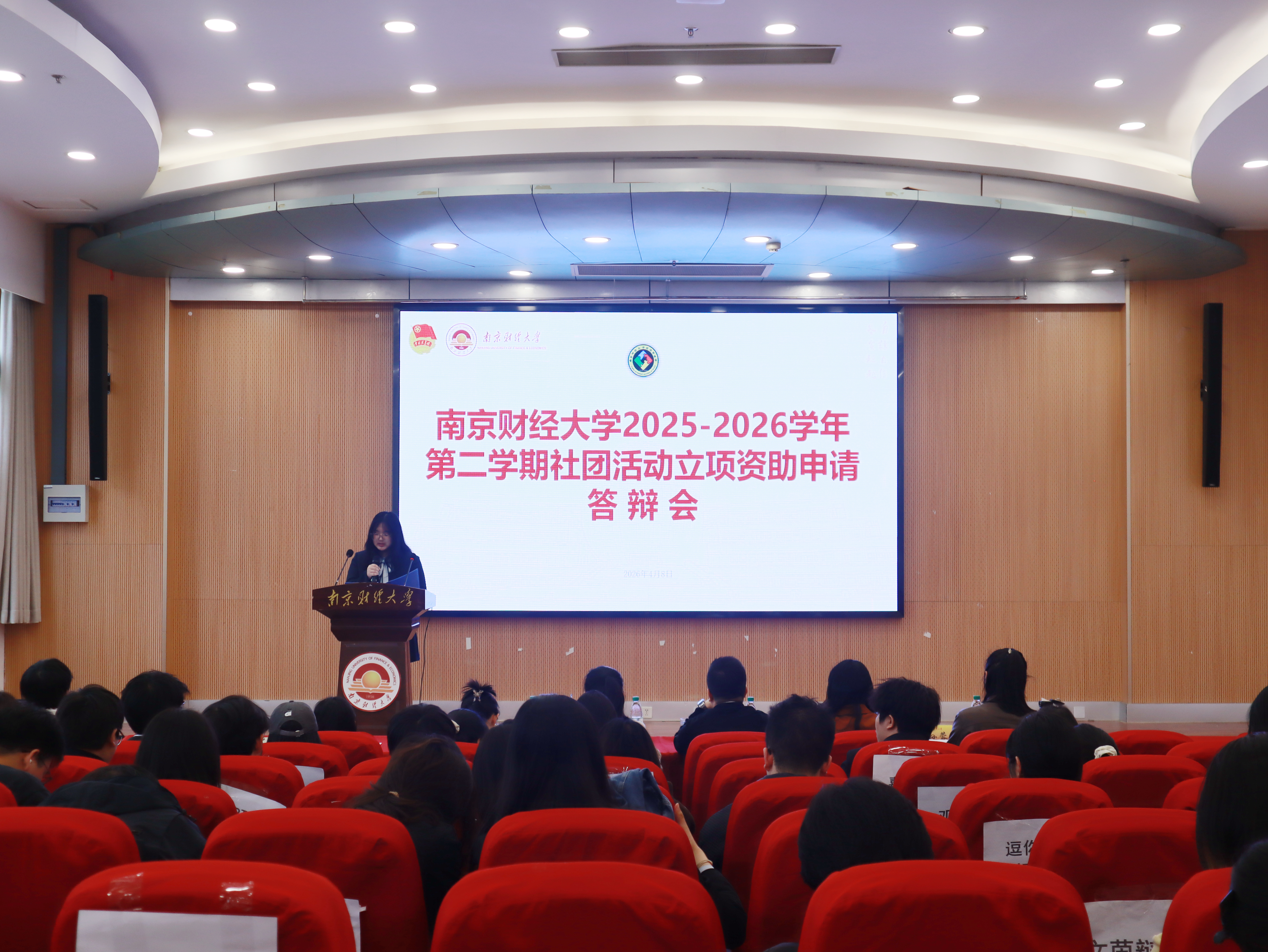 为进一步提升学生社团活动质量,促进社团活动创新,增强社团活动的吸引力,2026年4月8日下午,校团委于大学生活动中心301报告厅举行2025-2026学年第二学期社团活动立项资助答辩会。答辩评审团由我校学生社团建设管理评议委员会成员单位构成,本次答辩由校团委副书记胡新蕲老师、党委宣传部李卉老师、党委研究生工作部肖珊老师、党委学生工作部孙蓉蓉老师、财务处王焓秀老师担任评委。