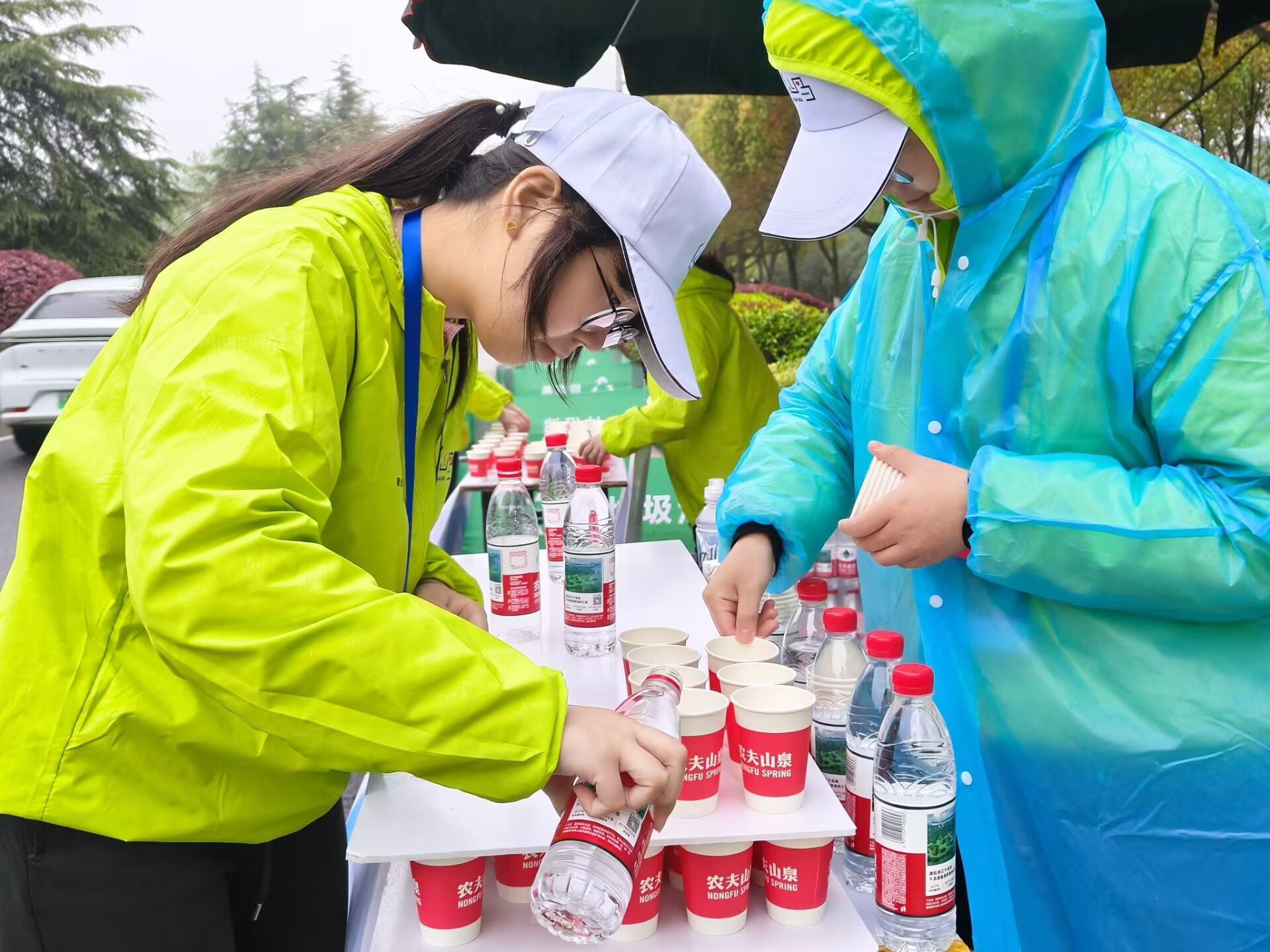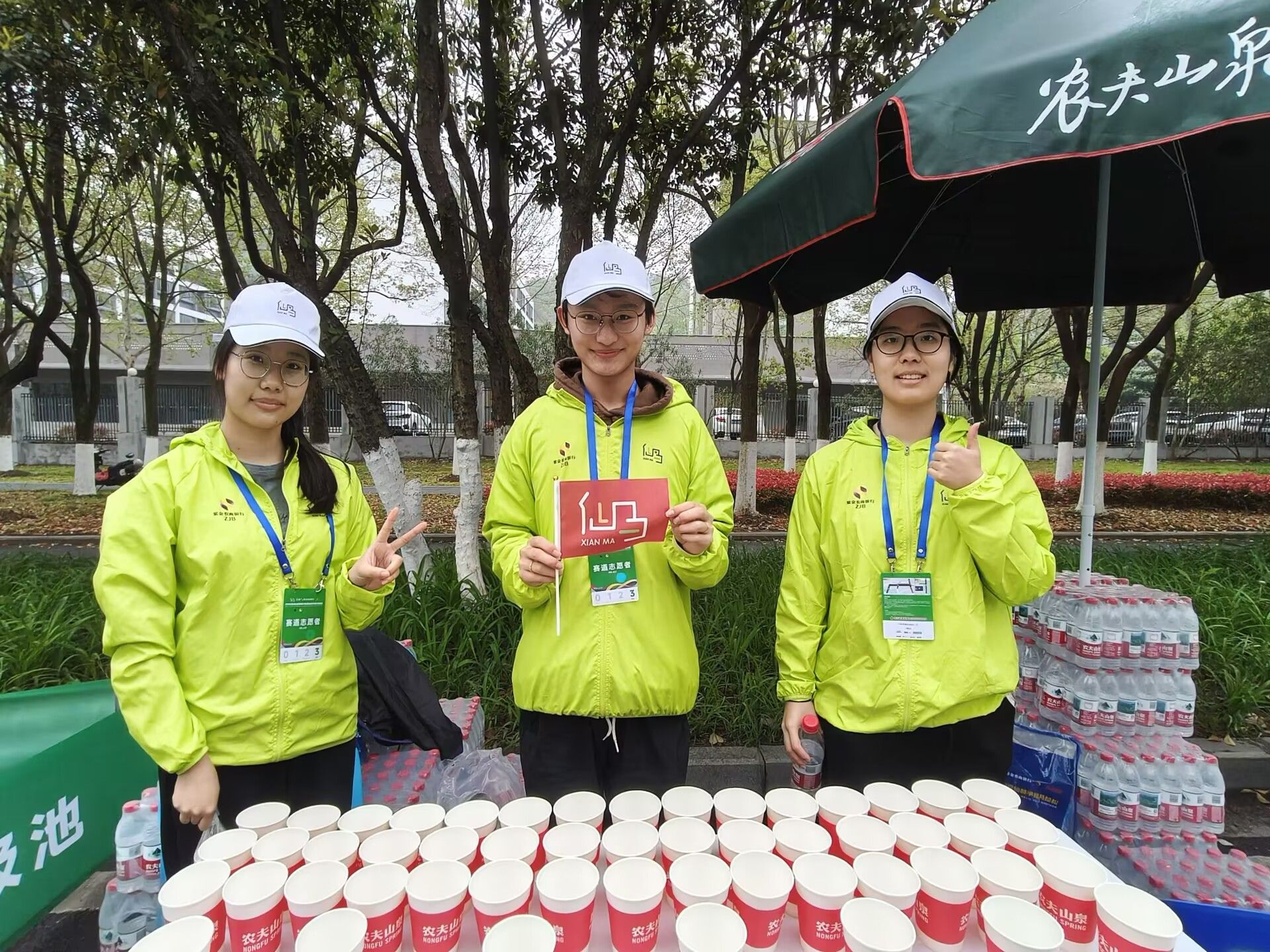 凌晨 5 时许,当城市尚在晨曦之中,所有志愿者已准时抵达各自岗位,迅速投入紧张有序的准备工作。赛道沿线,他们冒雨坚守,为选手指引方向、递上补给、加油呐喊;终点区域,他们耐心细致,为完赛选手佩戴奖牌、分发物资、提供协助。从晨光熹微到午后时分,志愿者们始终以微笑示人、以行动尽责,用一声声“加油”传递温暖,用一次次援手提供保障,成为赛道旁最动人的“绿色风景线”。