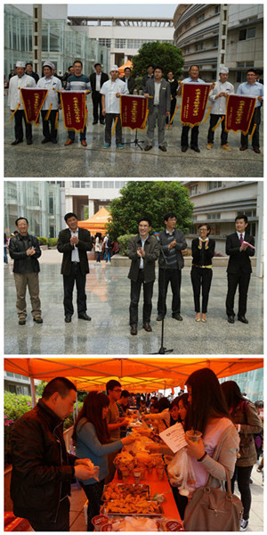 4月25日中午,由校后勤服务中心、校团委主办的第十届校园美食节“美食一条街”活动暨美食节颁奖仪式在仙林校区中苑举行。副校长焦富民出席活动,党委宣传部部长、保卫处、后勤服务中心、校团委等职能部门负责人参加了活动。