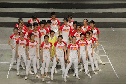 4月27号上午,我校“五月的鲜花”参演人员顺利抵京。下午4点,全体参演人员到丰台体育中心进行第一次走台。在正式走台前,同学们先做了一些热身运动,虽然是热身,但大家都特别专注用心,每一个动作都力求精确完美。央视导演看了我校的节目后,对我校节目表示肯定,认为我校选送的节目内容丰富,形式新颖。导演对我校节目也提出了一些修改建议,校艺术团指导老师李彬根据导演的意见对部分动作进行了修改。