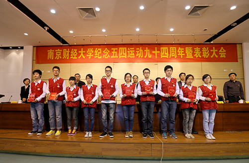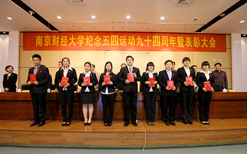 校团委书记段伟伟宣读了《关于表彰南京财经大学2012年度“五四红旗团总支(团支部)”、“优秀共青团工作者(项目)”、“优秀共青团员”、“优秀共青团干部”的决定》、《关于表彰南京财经大学2012—2013年度“十佳青年志愿者”、“杰出青年志愿者”、“优秀青年志愿者”的决定》。公共管理学院团总支等7个五四红旗团总支、郝园园等10名优秀共青团工作者、“圆梦计划”等10项优秀共青团工作项目、统计1001班等83个五四红旗团支部、孙鸣宇等349名优秀团干部、唐甜甜等1969名优秀团员、朱娱等10名“十佳青年志愿者”、张颖等100名“杰出青年志愿者”、刘婷等355名“优秀青年志愿者”受到表彰。