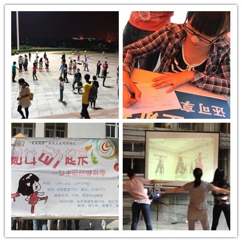 此次健身季的活动将持续到十月下旬,每周固定几个晚上在大学生活动中心广场举办,想要告别“宅”生活的女生们快来参与吧!