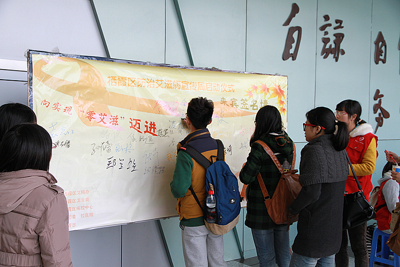 栖霞区疾控中心分管副主任朱俊在讲话中向在座的学生普及了有关防艾的小知识,他指出防艾的根本途径是规范社会行为,同时要加强对加强防艾知识的教育和宣传,他希望大家共同努力,共同抗艾。