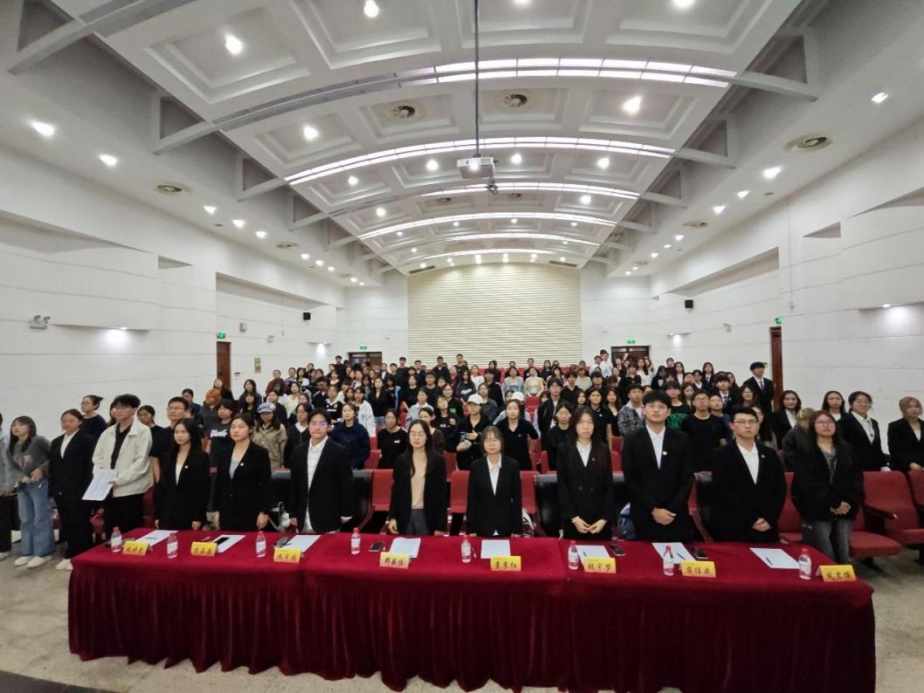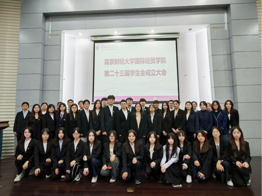 雏凤清于老凤声,新程今启聚群英,2025年10月14日晚,南京财经大学仙林校区国际经贸学院第二十三届学生会成立大会在专一楼二楼报告厅召开。国际经贸学院团委邓盛佳老师出席本次会议,分团委副书记凤昱博、范晶晶、张宇梦、蒋佳成,学生会主席程婧尧、董苏红、施宇同与全体学生会成员参会。此次成立大会由综合事务中心部长周添翼主持。