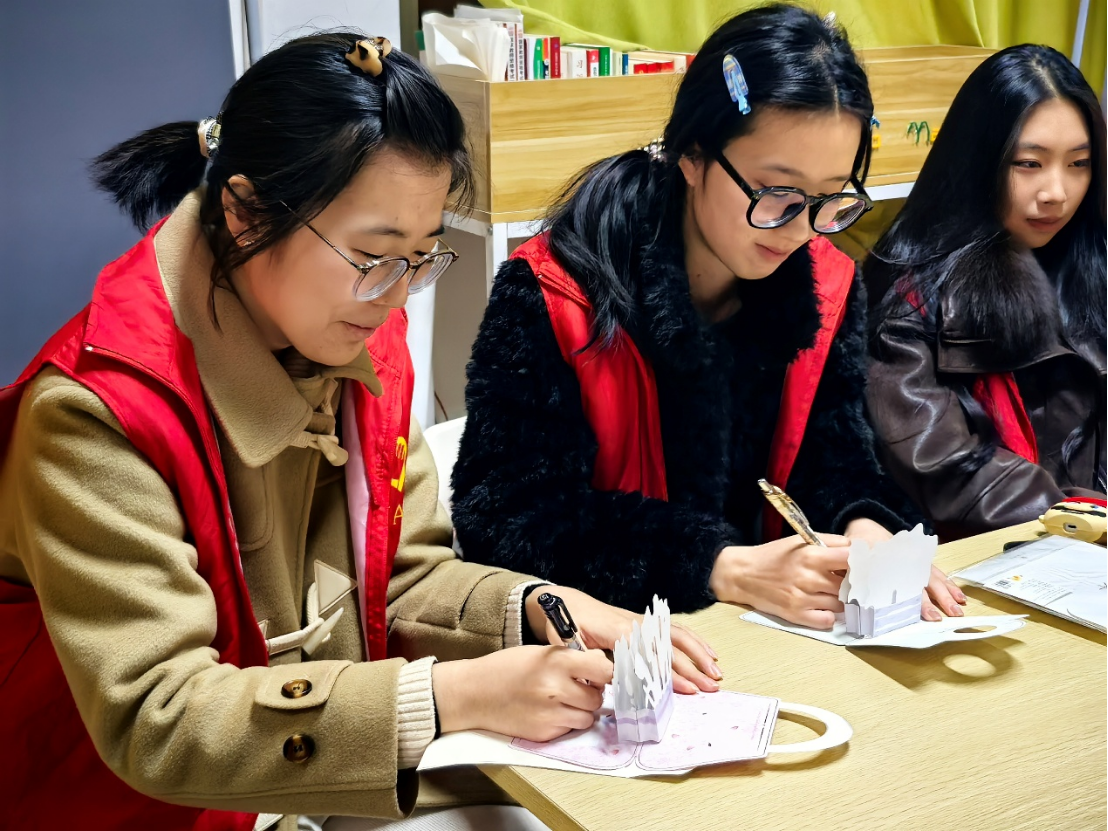 图为给阿姨写贺卡 李沛航摄