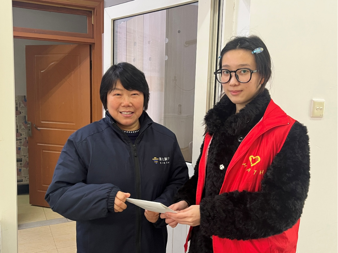 图为给阿姨送贺卡 李沛航摄