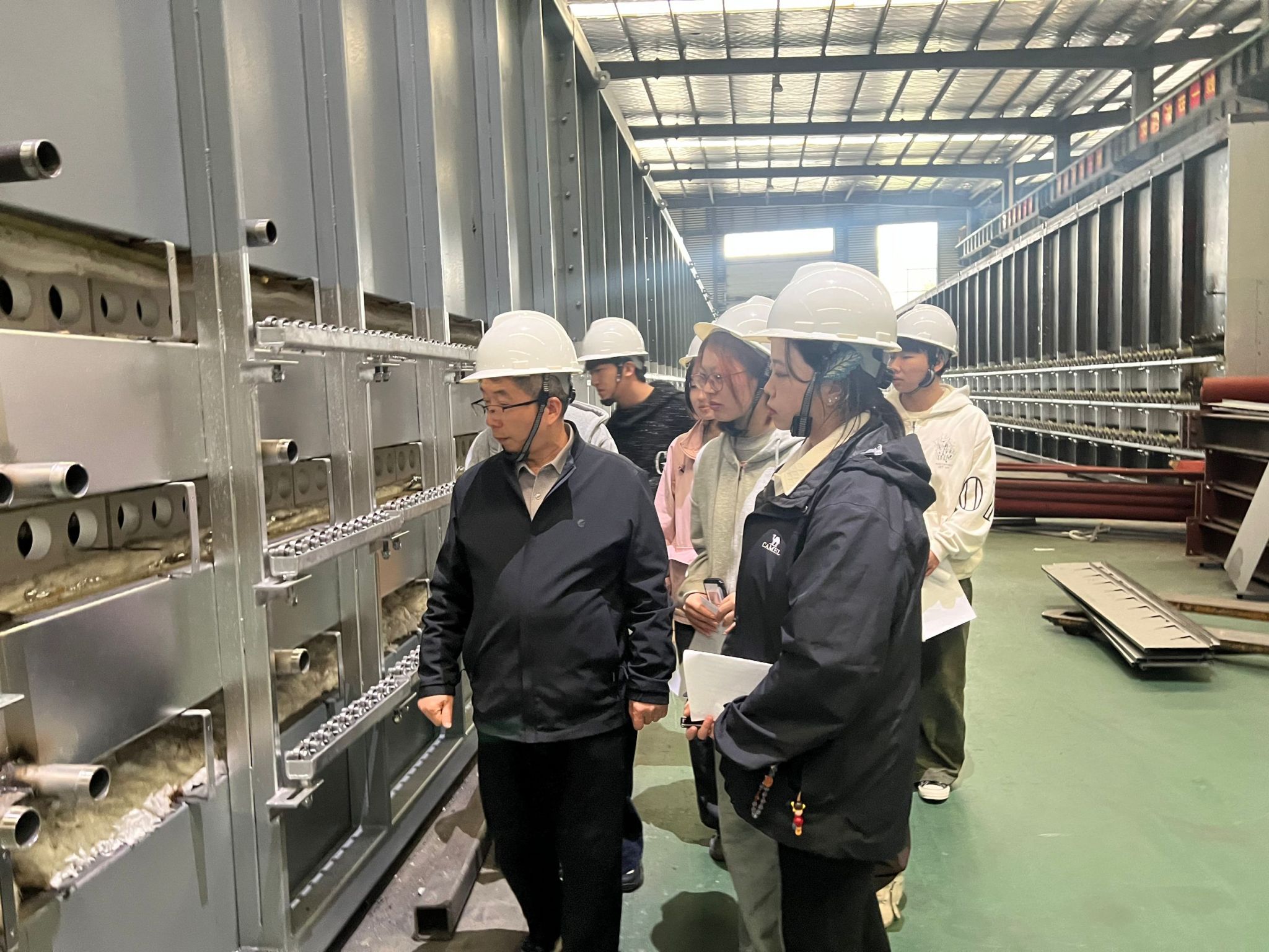 杜工程师热情地邀请同学们参观生产车间。机器轰鸣、产线有序,杜工程师如数家珍地介绍着工业炉的制造工序和广泛用途。学生们近距离观察了工业炉的生产流程,对“工匠精神”有了更加直观的体验。