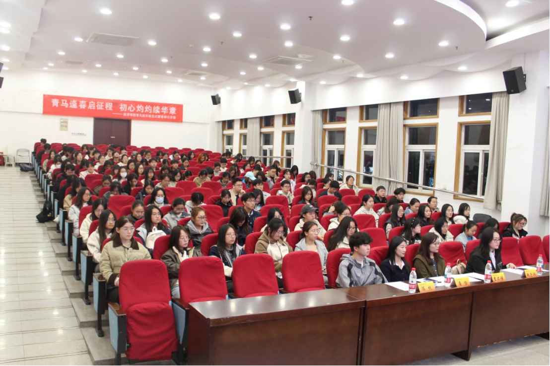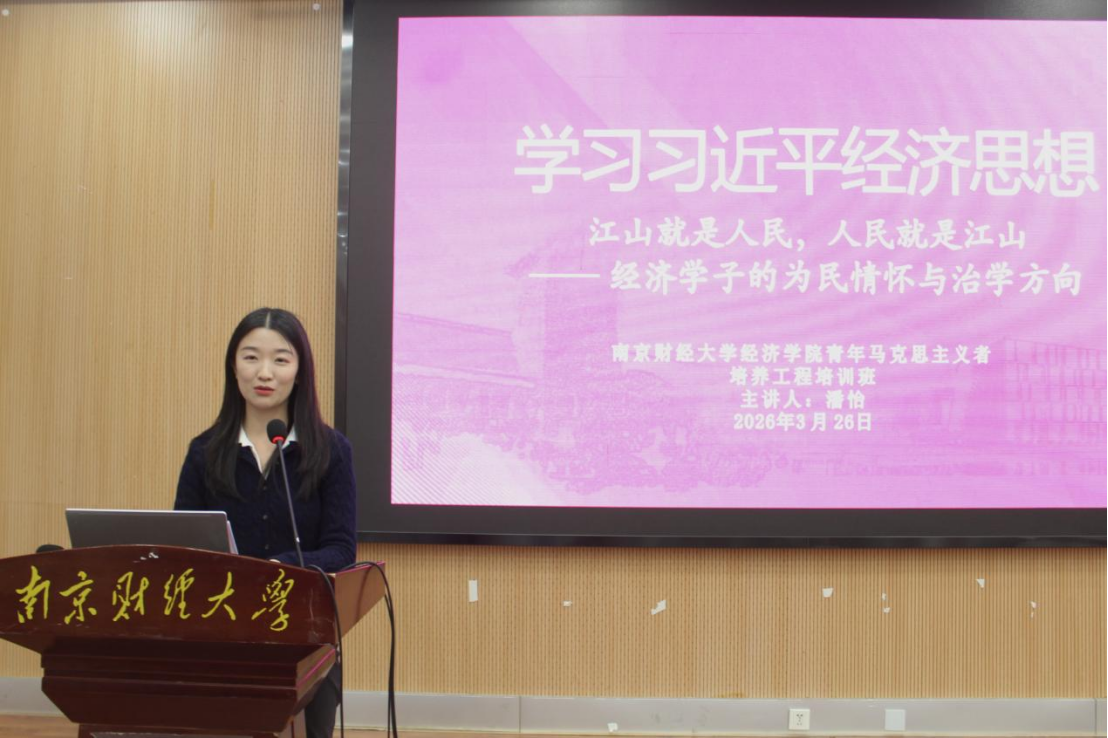 为深入学习贯彻习近平经济思想,引导青年学子筑牢人民立场、厚植家国情怀,3月31日晚,经济学院于大学生活动中心报告厅举办了“青马逢春启征程,初心灼灼续华章”青马班开班仪式暨信仰公开课。“红色领航”辅导员工作室成员潘怡老师为本期青年马克思主义者培养工程学员讲授了题为“江山就是人民,人民就是江山——经济学子的为民情怀与治学方向”的信仰公开课。